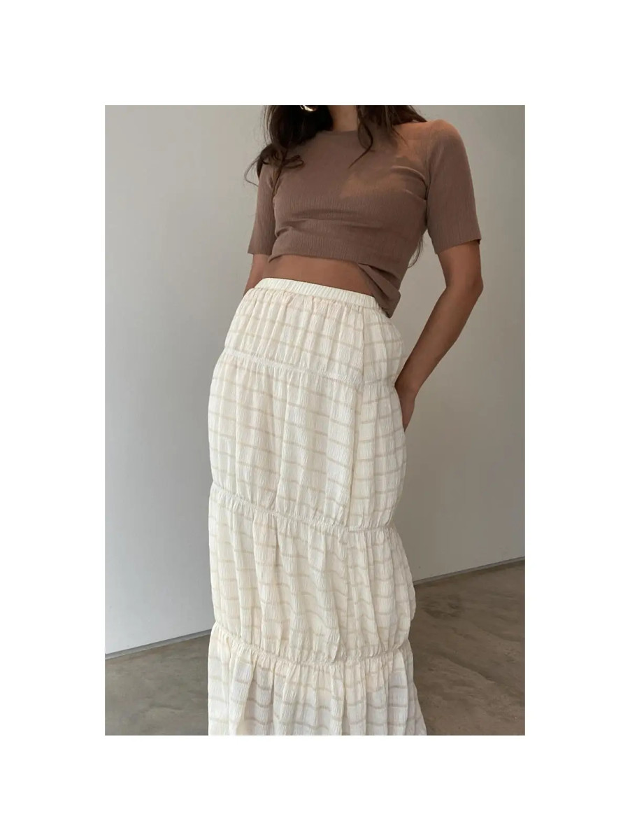 tiered maxi skirt | self 80% cotton, 18% nylon, 2% spandex | lining * model is 5'7" and is wearing a small, free shipping in the US.