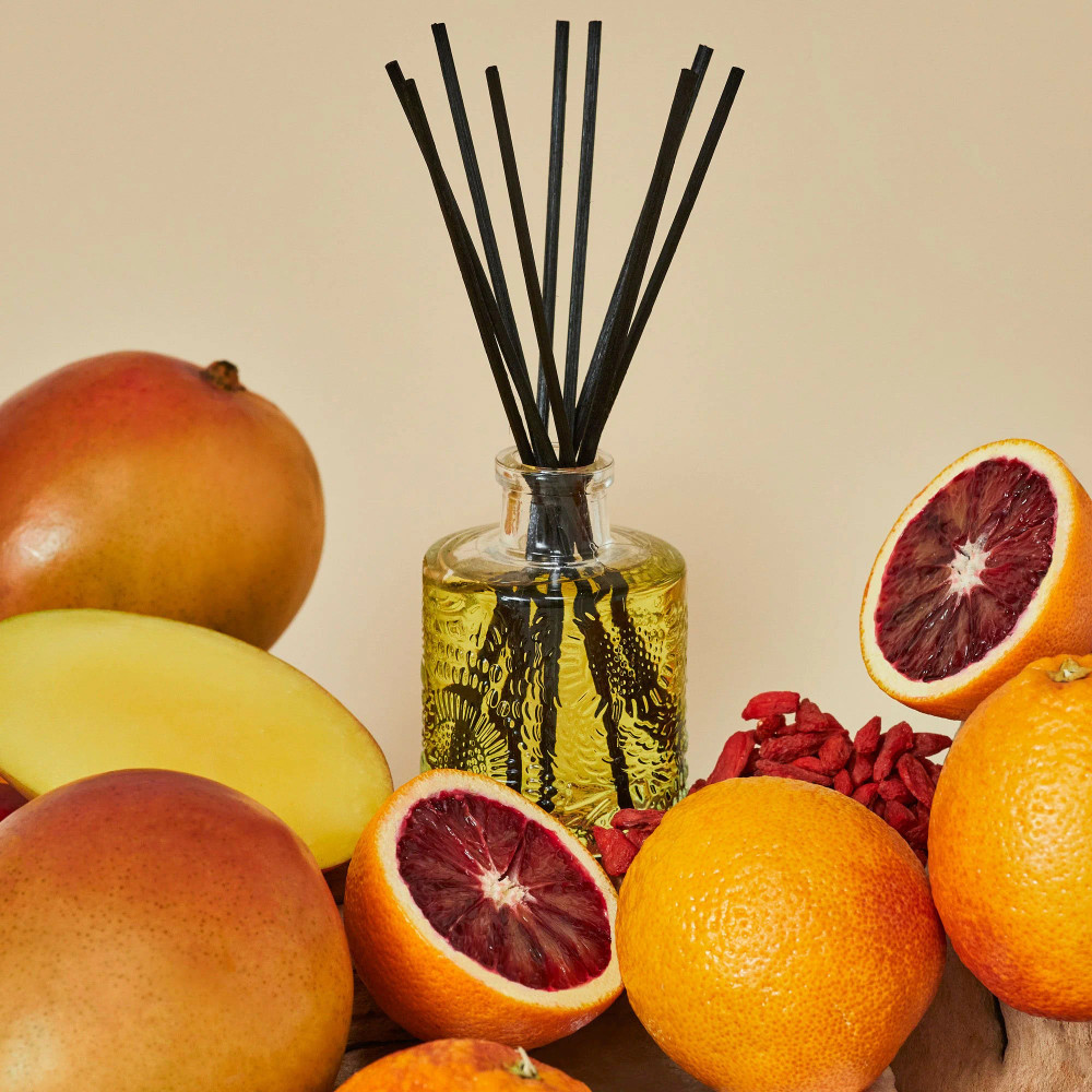 Loading... Please wait...Boldly thrilling, this vivid scent shakes ripe mango and bittersweet goji berries wide awake, while resting on a bed of tangy blood orange. Arousing the senses with tart tangerine and piquant pomelo nectar, the freshly squeezed and exhilarating aromatic instantly lifts the spirits and adds vibrant shine to the day.
